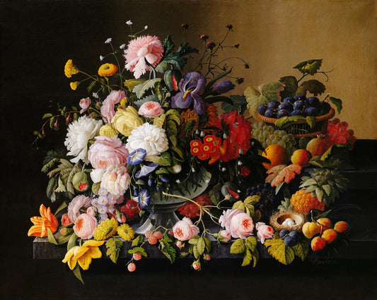 Flowers and Fruits Bouquet Dark Mural Wallpaper (SqM)