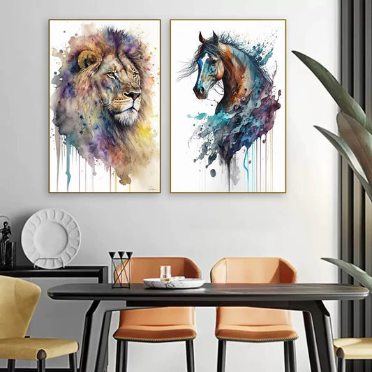 Watercolor Lion Horse Panda Elephant Canvas Prints