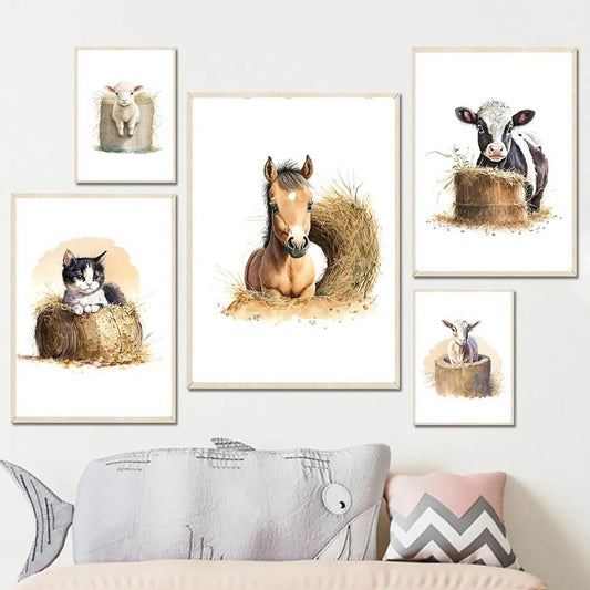 Cat Chick Sheep Dog Pig Cow Horse Farm Animals Wall Art
