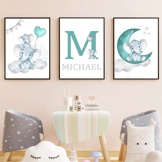 Custom Name Elephant Hot Air Balloon Canvas Prints