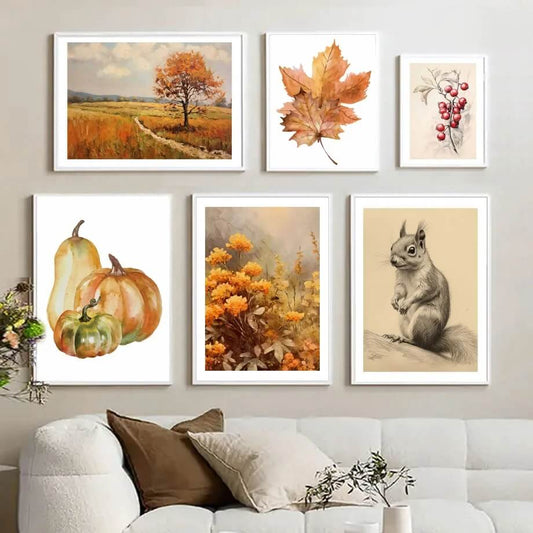Squirrel Butterfly Pumpkin Rustic Autumn Wall Art
