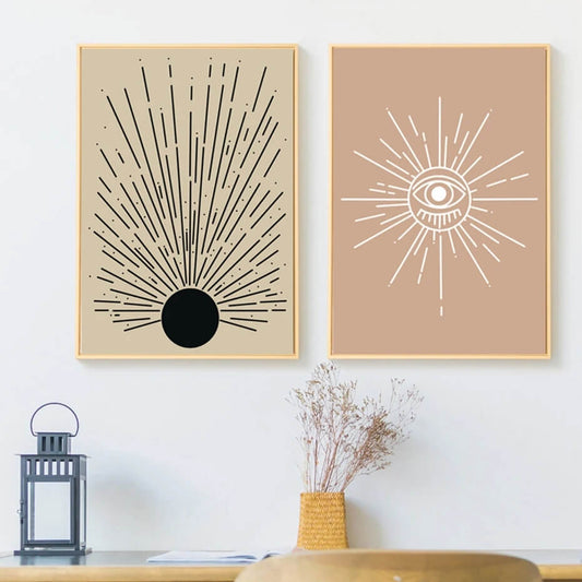 Mid Century Sun and Moon Boho Abstract Wall Art