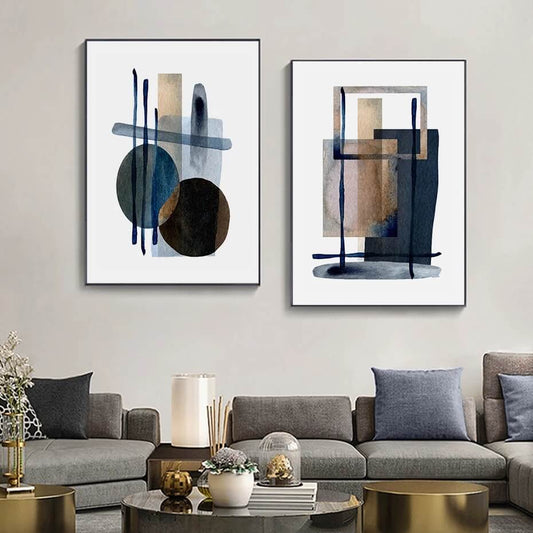 Abstract Watercolor Blue Beige Geometric Canvas Prints