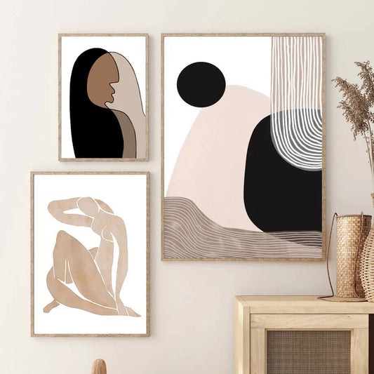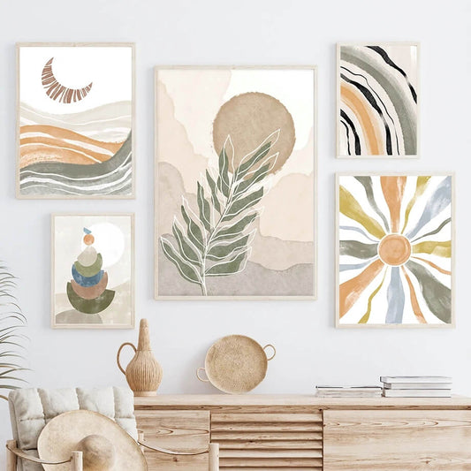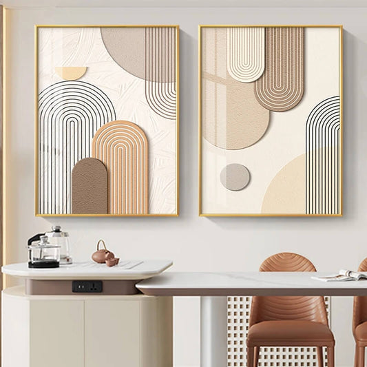 This collection blends modern abstract designs, textured monochrome prints, and soft botanical patterns—all unified by their use of sophisticated beige hues. These pieces work beautifully in Scandinavian, Japandi, boho, minimalist, and contemporary spaces, making them a versatile choice for both residential and commercial settings.