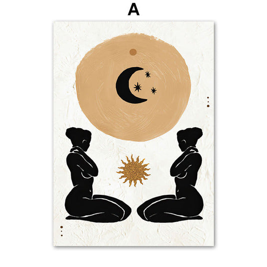 Abstract Sun Moon Phases Boho Wall Art Canvas Prints