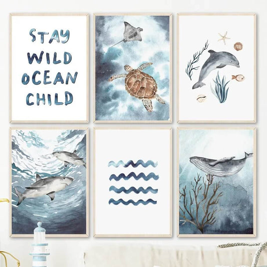 Shark Whale Dolphin Sea Turtle Ocean Canvas Prints