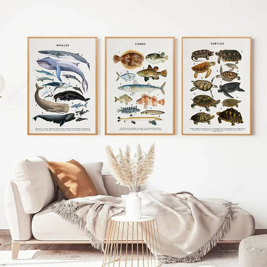 Whale Shark Seashells Turtles Octopus Fish Marine Life Educational Canvas Print