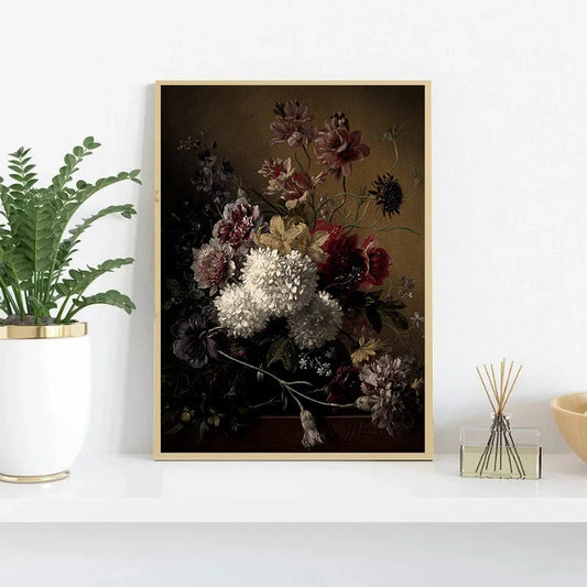Dark Academia Canvas Prints Vintage Black Background Floral Wall Art