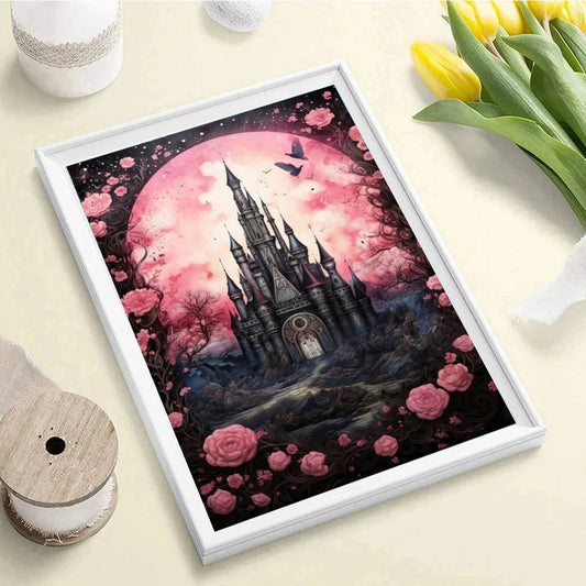 Gothic Retro Dark Academia Pink Flower Raven Castle Witchery Canvas Print