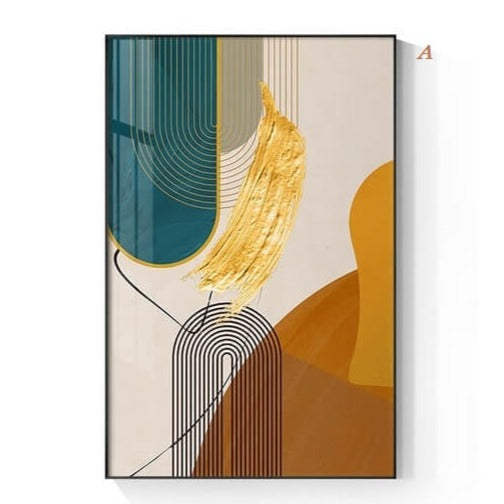Nordic Abstract Golden Geomorphic Above Bed Canvas Wall Art