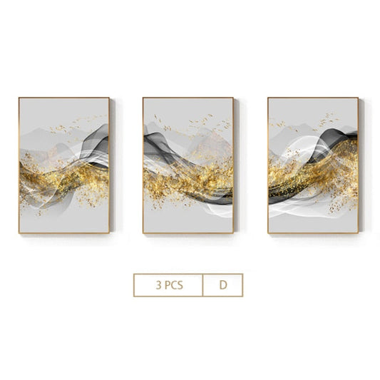 Perfect for contemporary interiors, modern glam themes, or even boho-chic spaces needing a pop of elegance, these artworks blend rich golden tones with striking designs, creating visual warmth and refined ambiance.