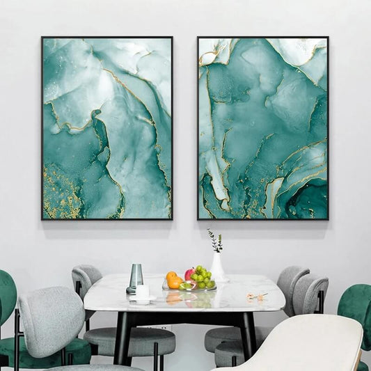 Golden Green Abstract Marble Wall Art