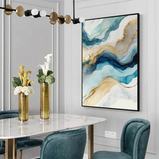 Abstract Marble Turquoise Golden Fluid Canvas Wall Art