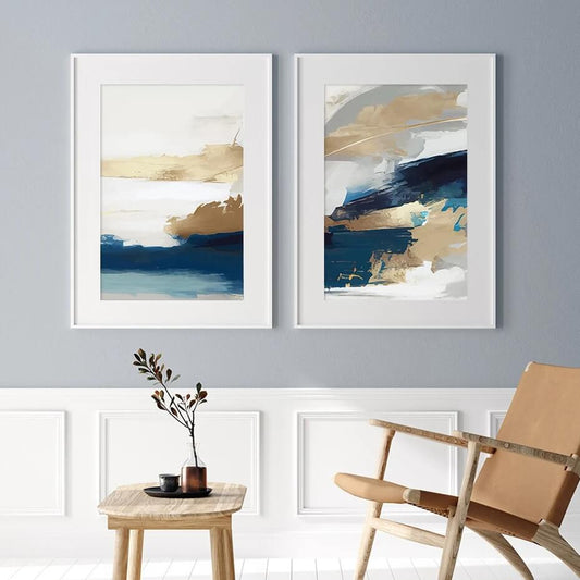 Modern Golden Blue Abstract Wall Art