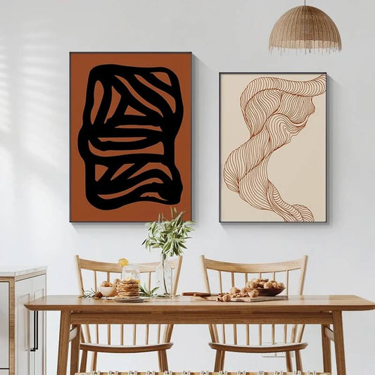 Beige Brown Minimalist Geometric Line Wall Art