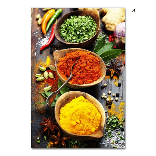 Kitchen Theme Mix Herb and Spices Canvas Prints