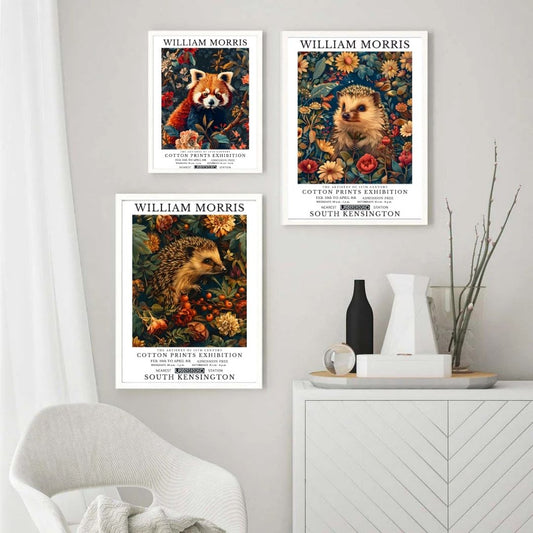 Vintage Woodland Animals Raccoon Hedgehog Possum William Morris Wall Art Canvas Print