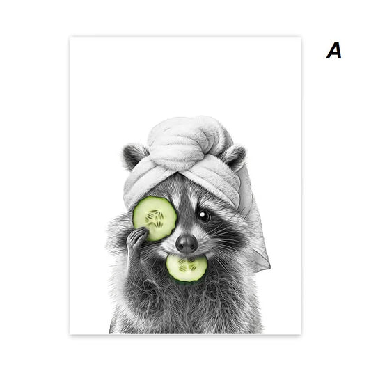 Funny Animals Cat Giraffe Elephant Toilet Paper Bathtub Black White Wall Art
