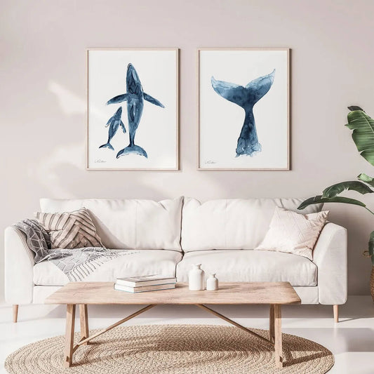 Minimalist Blue Watercolor Nautical Nordic Wall Art