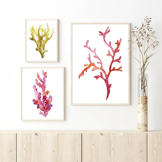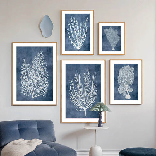 Navy Sea Coral Seaweed Marine Aesthetic Wall Art