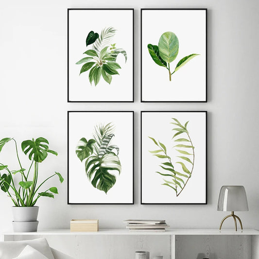 Watercolor Green Plants Leaves Minimalist Wall Art