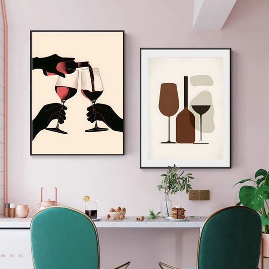Retro Minimalist Coffee Cups Wine Glass Canvas Print Wall Art
