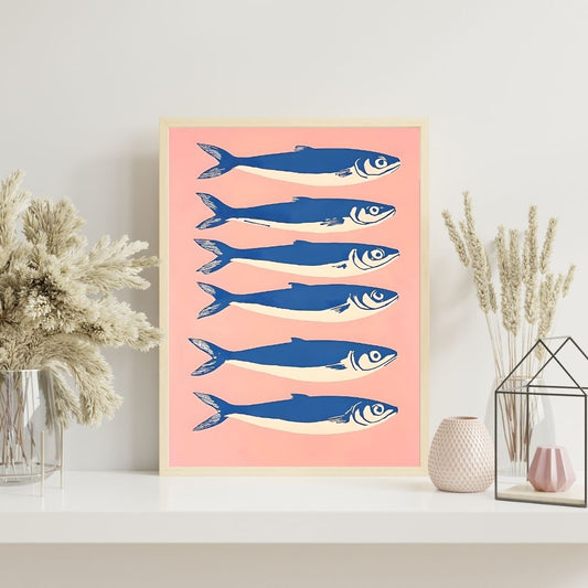 Retro Mackerel Vintage Pink Canvas Print Wall Art