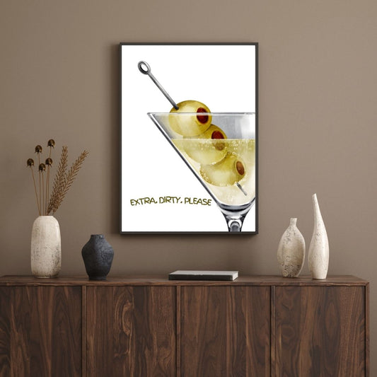 Minimalist Martini Olives Cocktail Kitchen Wall Art Print