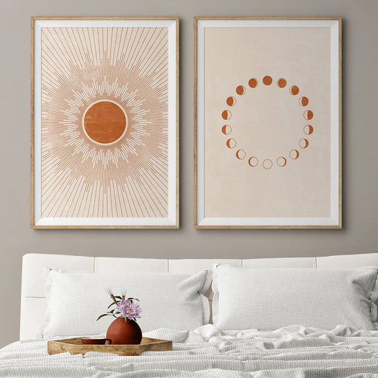 Mid Century Sun Moon Boho Canvas Print Wall Art