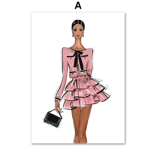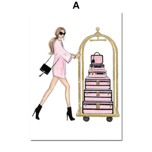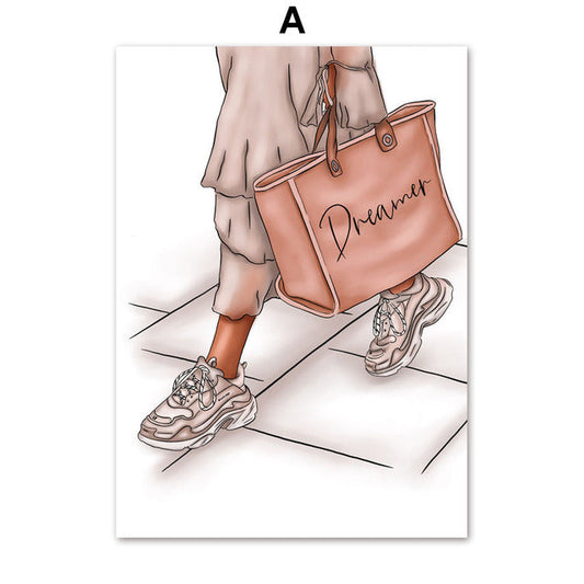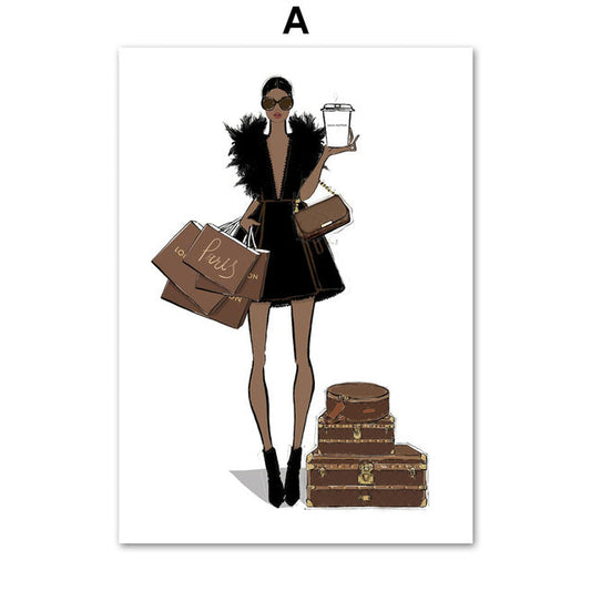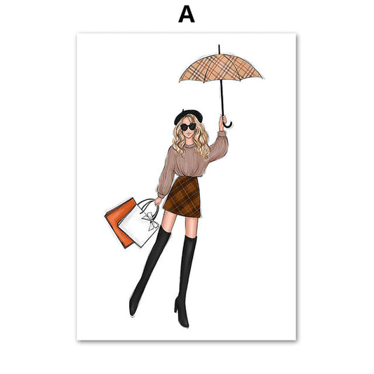 Paris Fashion Shopping Girl Canvas Prints | Minimalist Nordic Style Elegant Woman Poster For Girls Room Living Room Bedroom Home Décor