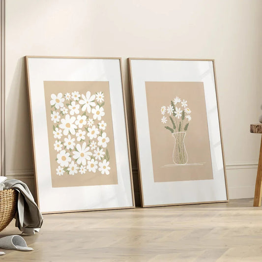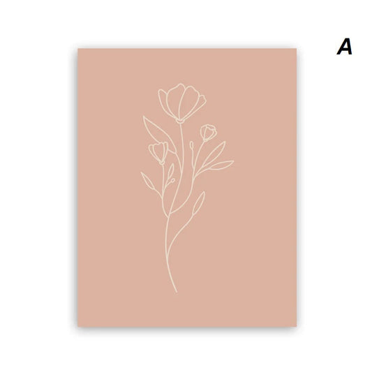 Abstract Minimalist Line Nordic Flowers Daisies Pastel Canvas Wall Art