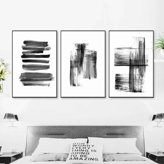 Abstract Brush Strokes Ink Black White Canvas Wall Art