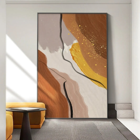 Modern Abstract Beige Brown Orange Color Block Wall Art