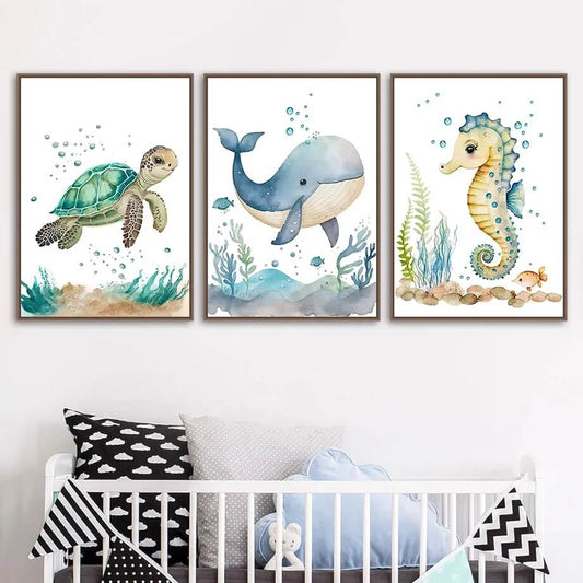 Cute Whale Sea Horse Octopus Crab Turtle Wall Art