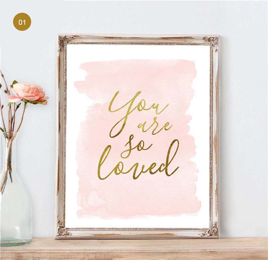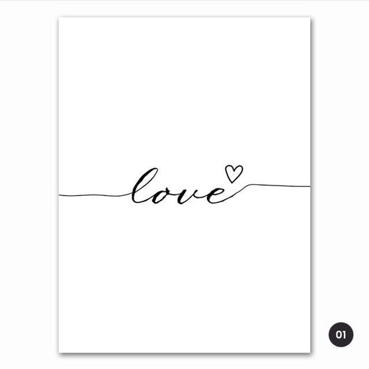 Minimalist Nordic Black Pink Love Quote Wall Art Canvas Print