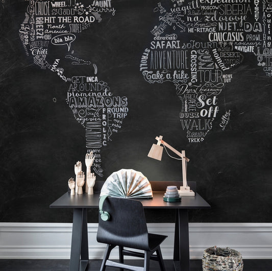 Chalkboard Wanderlust World Map Mural Wallpaper (SqM)