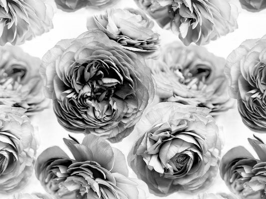 Summer Wind Roses Black & White Mural Wallpaper (SqM)