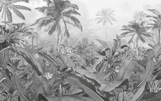 Caribbean Rainforest Black and White Mural Wallpaper (SqM)