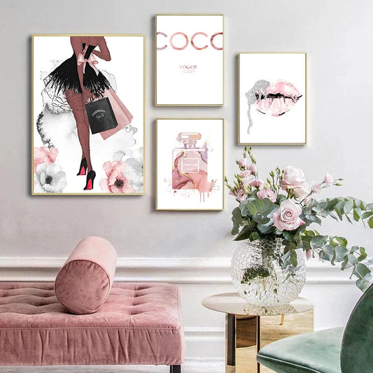 Pink Lips Perfume Motivational Coco Chanel Quotes Wall Art
