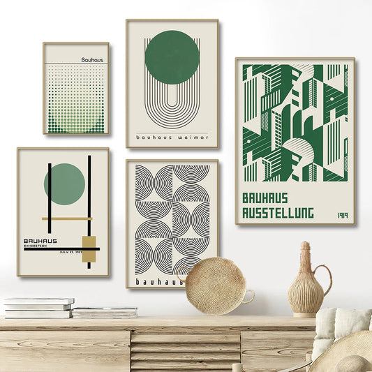 Bauhaus Green Color Abstract Geometric Lines Canvas Prints