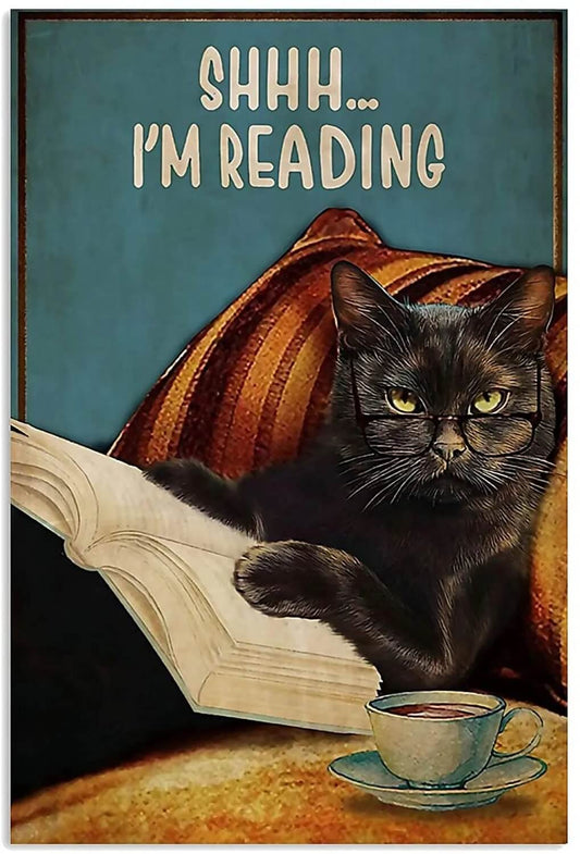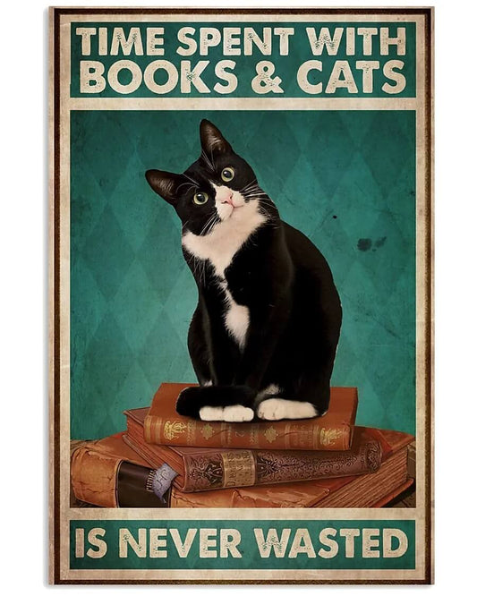 Black Cat Vintage Time Spent With Books and Cats Canvas Print