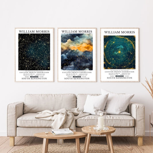 Galaxy Stars Moon Celestial William Morris Wall Art Canvas Prints