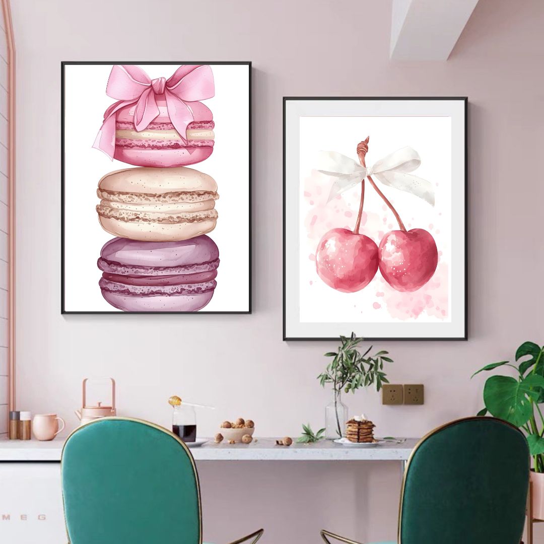 Patisserie Pink Macaron Cherries Minimalist Wall Art Canvas Prints