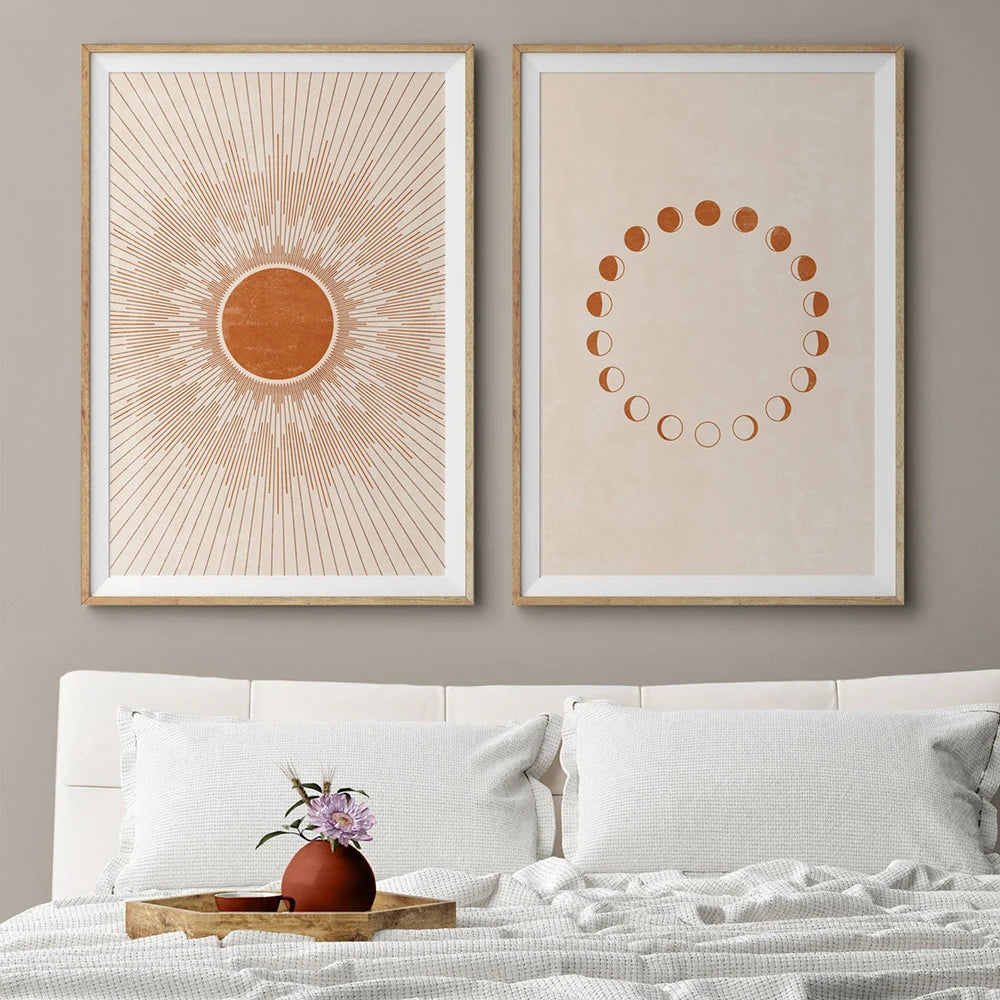 Mid Century Sun Moon Boho Canvas Print Wall Art